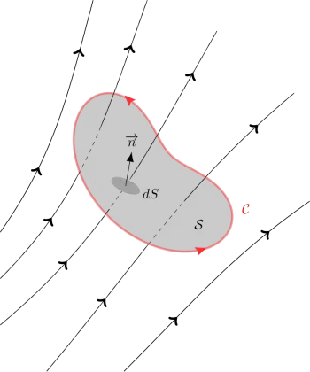 Die folgende Formel definiert den Zusammenhang zwischen der Änderung des magnetischen Flusses, der durch eine durch die Kontur C abgeschlossene Fläche S hindurchgeht, und dem elektrischen Feld entlang derselben Kontur: